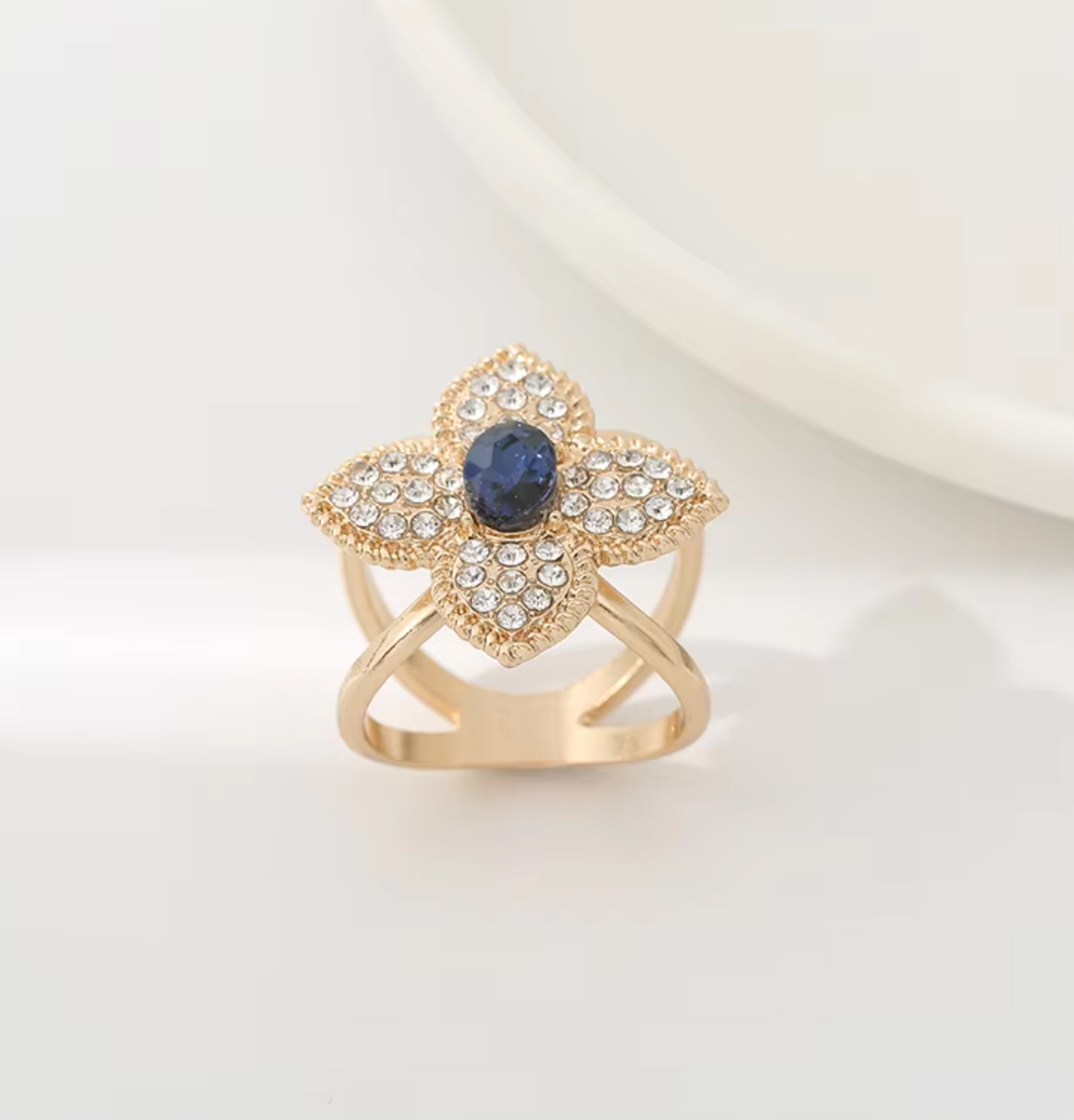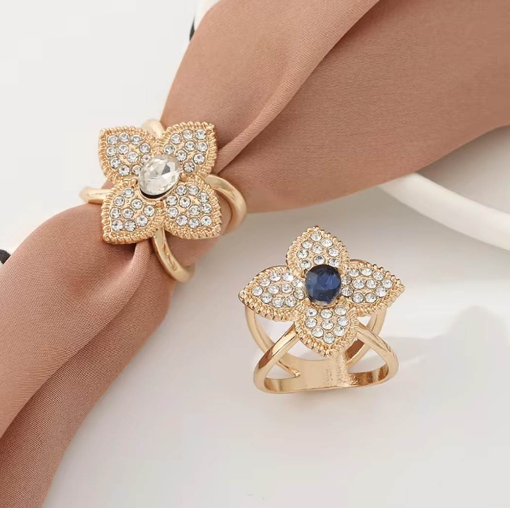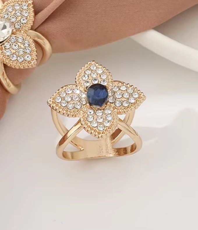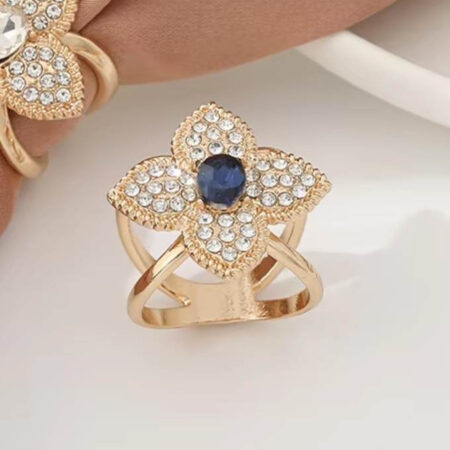 Brošňa na šatku a šál – zlatý štvorlístok s modrým kryštálom