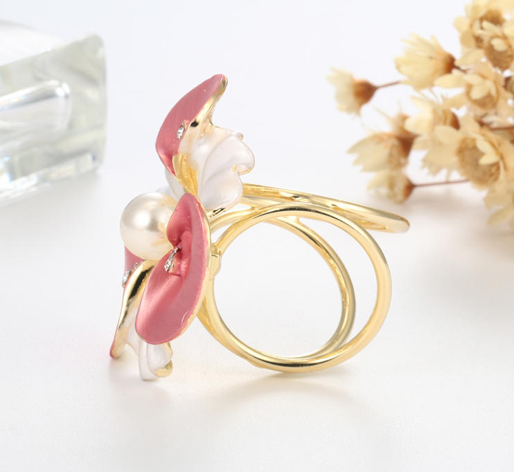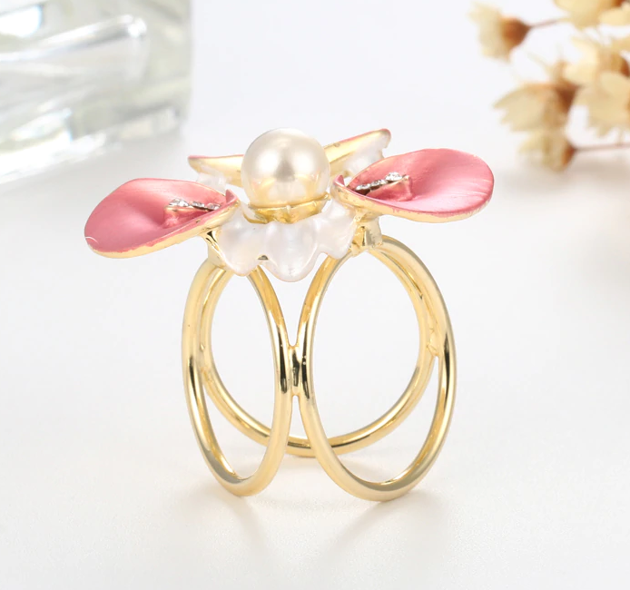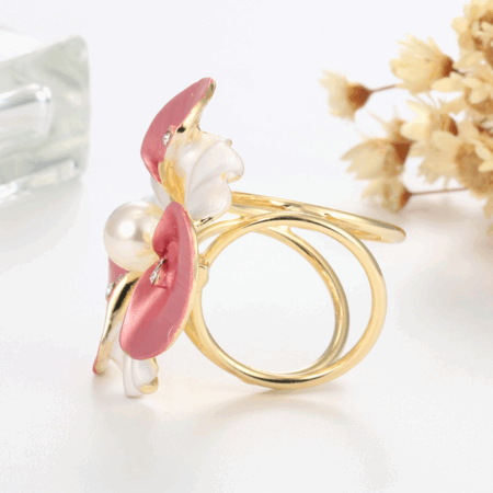 Ozdoba na šatku v tvare bielych kvetín s farebnými kryštálmi. Ozdobná prstencová brošňa vhodná pre šále a šatky. Celá ozdoba je v zlatej farbe a slúži na prevlečenie hodvábnej šatky alebo šálu. Skúste byť originálna a ozdobne si svoju hodvábnu šatku alebo hodvábny šál.