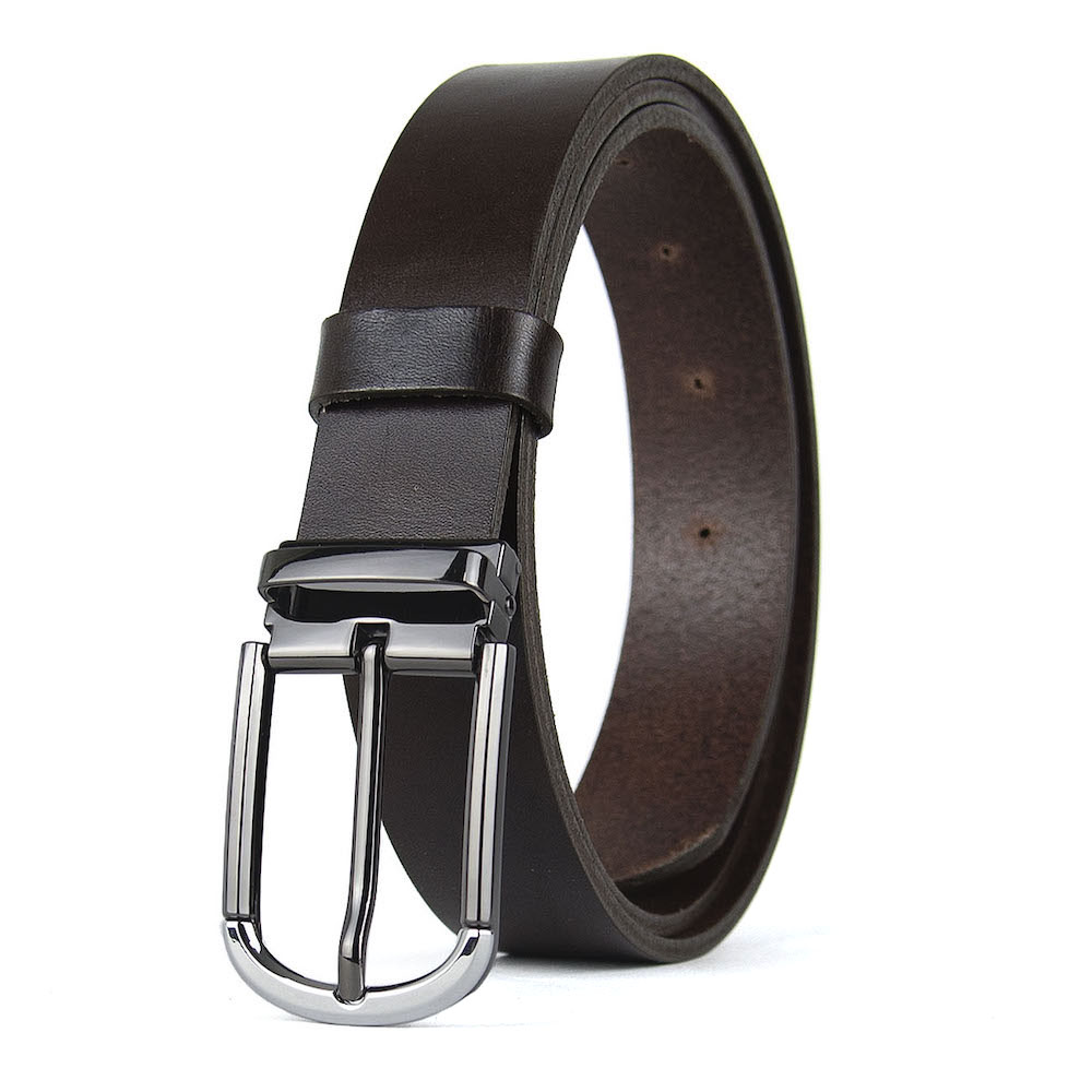 Klasika, ktorá nikdy nesklame. Poctivý kožený opasok s dierkami, ktorý drží, vyzerá dobre a vydrží roky.