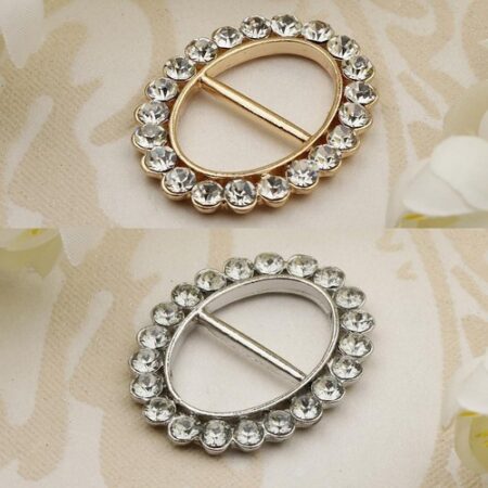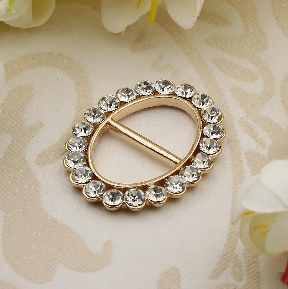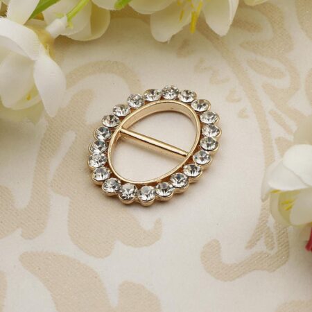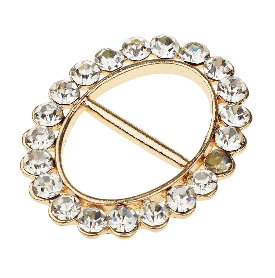 Luxusná spona na šatku a šál v oválnom dizajne so sklíčkami v zlatej farbe