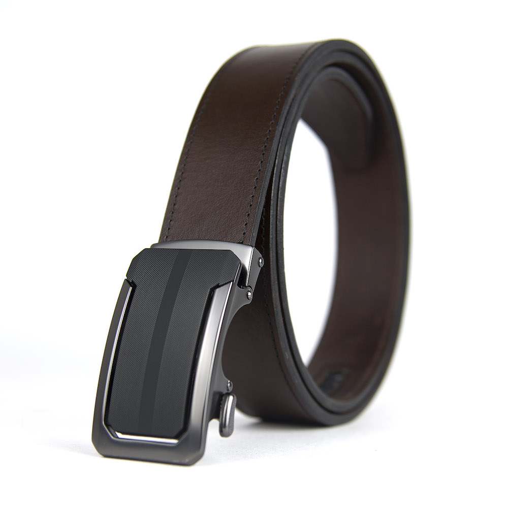 Opasok z pravej kože s automatickou prackou. Kožený opasok je vyrobený z pravej talianskej kože. Automatická nadčasová pracka zaručí obdiv a prestíž. Pracka sa automaticky zapína pomocou dlhej roletky na vnútornej strane opasku. Je možné nastavovať si dĺžku podľa svojich požiadaviek. Kožený pasok je vhodný pre biznismenov a mladých ľudí. Naše módne opasky sú vybavené prakticky nezničiteľným, skrytým track systémom s viac než 20 + dimenzovanými bodmi, takže si môžete upraviť svoj opasok pre dokonalé prispôsobenie Vášmu pásu. Všetky naše jedinečné kožené opasky s automatickou prackou na opasok používajú jednoduchý, pružinou kalibrovaný mechanizmus alebo mechanizmus založený na magnete pre dokonalé zaistenie pracky s track systémom.