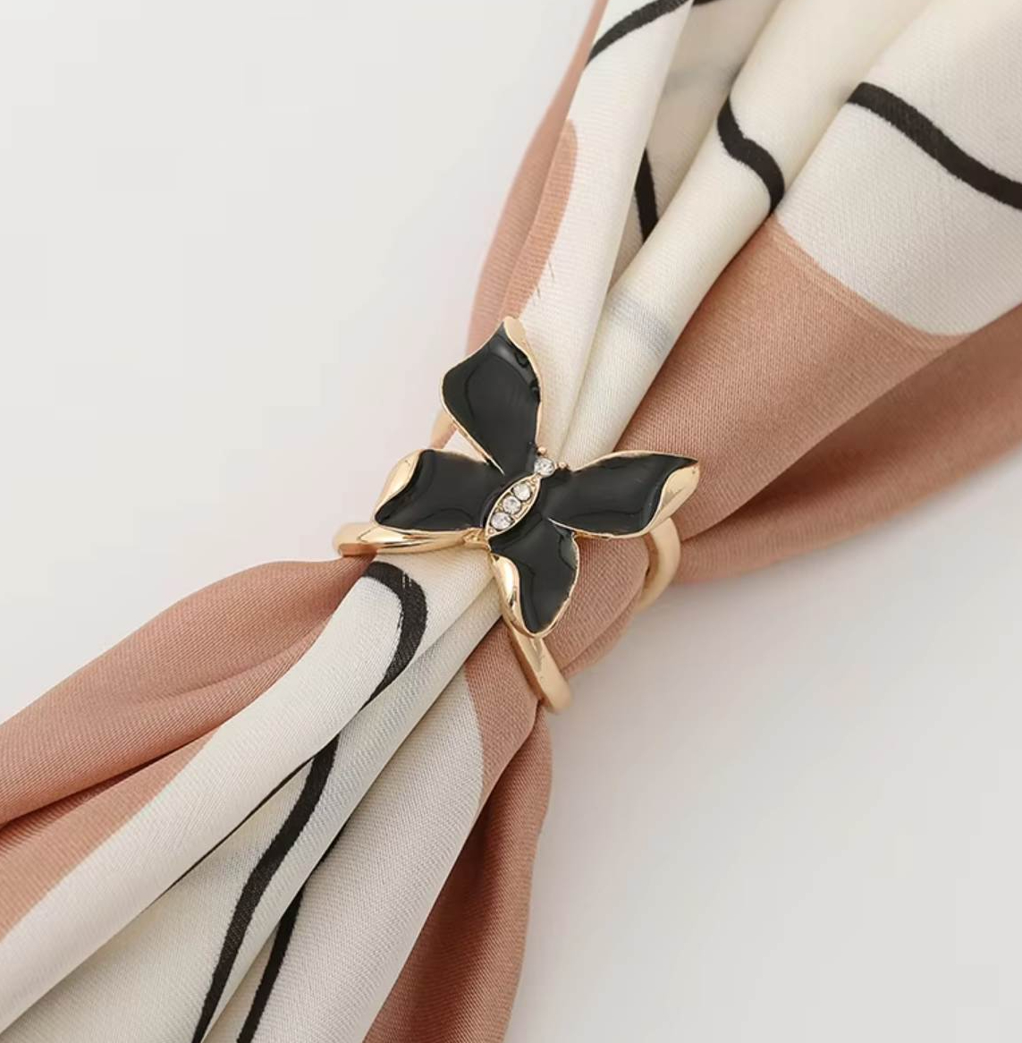 Ozdoba na šatku a šál v podobe čierneho smaltovaného motýľa