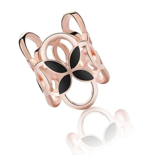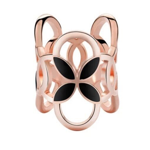 Rúrková ozdoba na šatky s čiernymi kvetmi v ružovo zlatej farbe