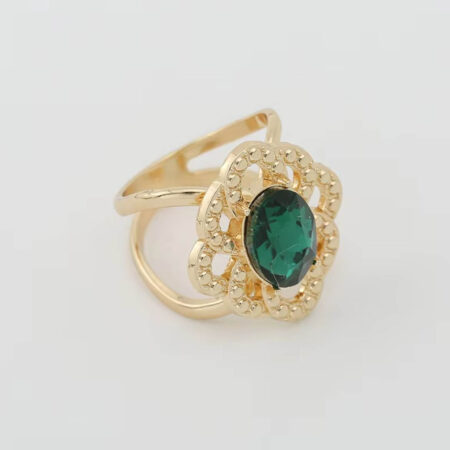 Brošňa na šatku a šál v antickom dizajne so zeleným kryštálikom